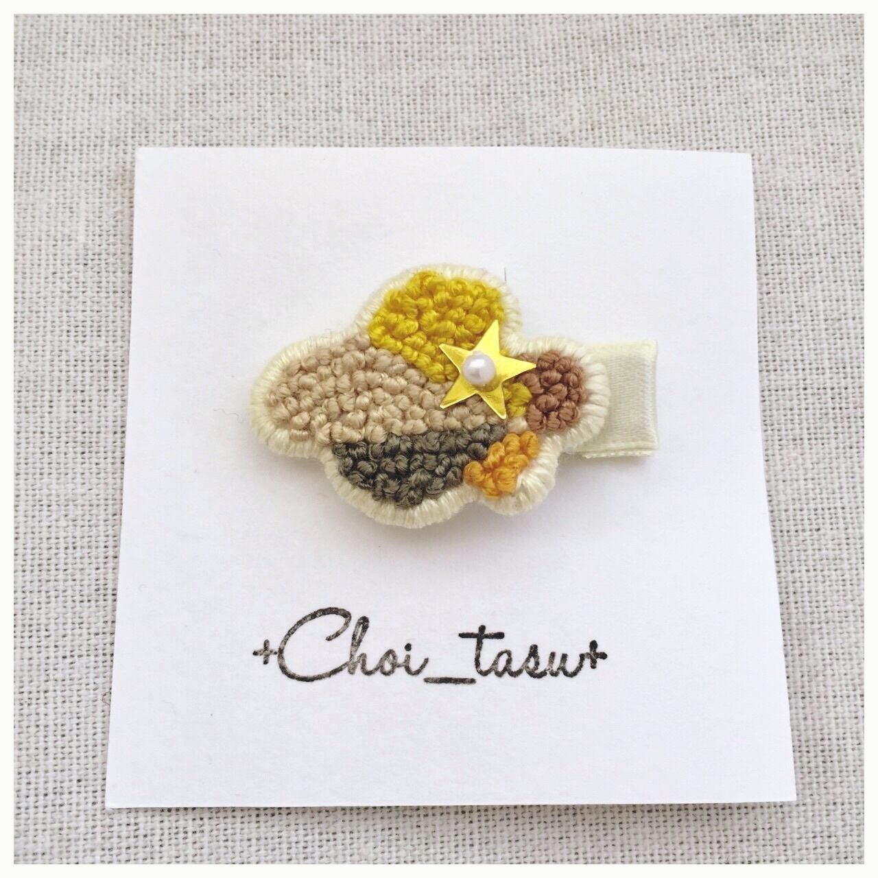雲モチーフのベビーヘアクリップ。